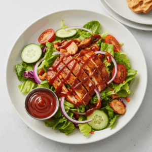A2: The magic lies in the combination of smoky BBQ-glazed chicken breast, fresh romaine and mixed greens, juicy grape tomatoes, sweet corn kernels, and crunchy tortilla strips. The salad is then generously topped with a tangy BBQ ranch dressing that adds a creamy, slightly spicy kick, setting it apart from classic BBQ salads.