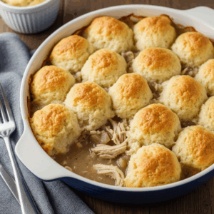 There’s something undeniably heartwarming about chicken and dumpling casserole—a dish that wraps you in comfort like a soft, familiar blanket. With tender chicken, fluffy dumplings, and rich, savory broth baked to golden perfection, this cozy classic brings soul-soothing delight in every bite. Perfect for chilly days or a nostalgic taste of home, it continues to bring warmth and smiles to countless tables.