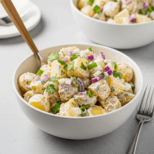 A8: Serve potato salad chilled or at room temperature alongside grilled meats, picnic favorites, or as a hearty side for summer barbecues. Garnish with extra herbs, a sprinkle of paprika, or a few crumbled bacon bits for presentation and an extra flavor punch. It’s the perfect crowd-pleaser for any casual gathering!