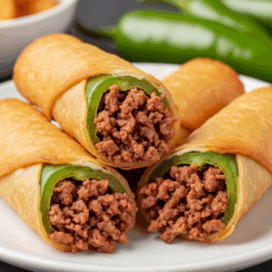 A: Imagine the bold, creamy, and spicy flavors of a classic jalapeno popper, but wrapped in a crispy, golden egg roll shell-and then add savory ground beef for an irresistible twist. These egg rolls transform a popular appetizer into a hearty, bite-sized snack that’s perfect for any occasion.